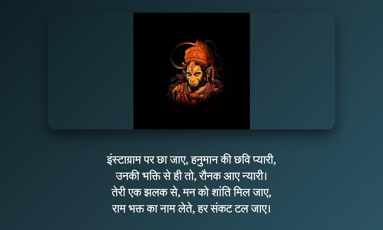 यह आपकी सोशल मीडिया identity को एक पवित्र और प्रेरणादायक रूप देता है। यह DP न केवल आपकी स्क्रीन पर शोभा बढ़ाती है, बल्कि हर बार जब आप इसे देखते हैं, तो यह आपको आंतरिक शक्ति और शांति का अनुभव कराती है। अपनी प्रोफाइल के लिए एक ऐसी हनुमान DP चुनना जो आपके दिल को छू जाए, आपके भीतर नई ऊर्जा का संचार कर सकता है। यह एक ऐसा माध्यम है जिसके जरिए आप बिना कुछ कहे अपनी भावनाओं को व्यक्त कर सकते हैं, और अपने आस-पास के लोगों में भी सकारात्मक ऊर्जा फैला सकते हैं। यह सिर्फ एक फोटो नहीं, बल्कि एक आध्यात्मिक स्टेटस है।