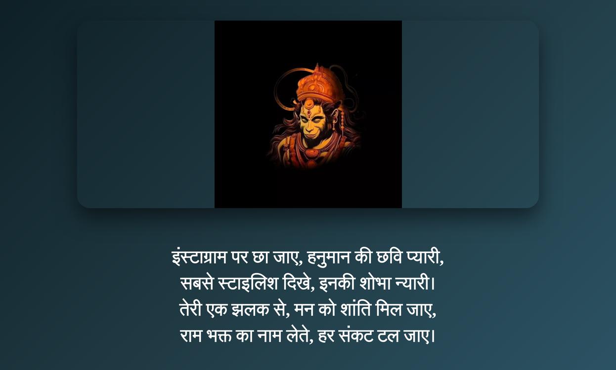 Hanuman DP:आज के डिजिटल युग में, हमारी सोशल मीडिया प्रोफाइल हमारी पहचान का एक महत्वपूर्ण हिस्सा बन गई है। जब बात अपनी श्रद्धा और आस्था को व्यक्त करने की आती है, तो हनुमान DP चुनना अपने आप में एक शक्तिशाली संदेश देता है। यह सिर्फ एक तस्वीर नहीं, बल्कि आपकी अटूट भक्ति, शक्ति और साहस का प्रतीक है। जब आप अपनी प्रोफाइल पर हनुमान जी की तस्वीर लगाते हैं, तो यह आपके मूल्यों और विश्वासों को दर्शाती है, जिससे आपके दोस्तों और फॉलोअर्स को आपकी आध्यात्मिक भावनाओं का एहसास होता है। यह आपके ऑनलाइन व्यक्तित्व को एक अनोखा और सकारात्मक स्पर्श देता है, जो आपके प्रोफाइल को दूसरों से अलग बनाता है।
